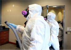 4. Pollard & Pollard cleanup technicians are professionally trained, insured/bonded, and always dressed in full personal protective equipment with a full-face respirator masks